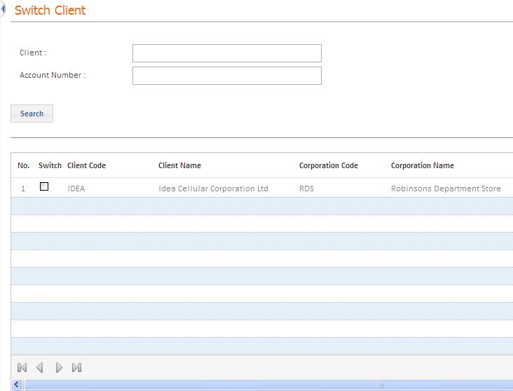 2. Click Search. The grid displays the list of all clients belonging to the selected corporation.